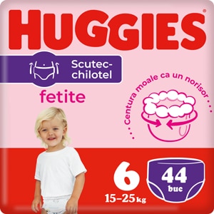 Scutece chilotel Huggies Mega pack 6, Girl, 15-25 kg, 44 bucati